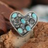 Be the first to review “Kingman Turquoise Sterling Heart & Flowers Statement Ring, Sz 7.25”